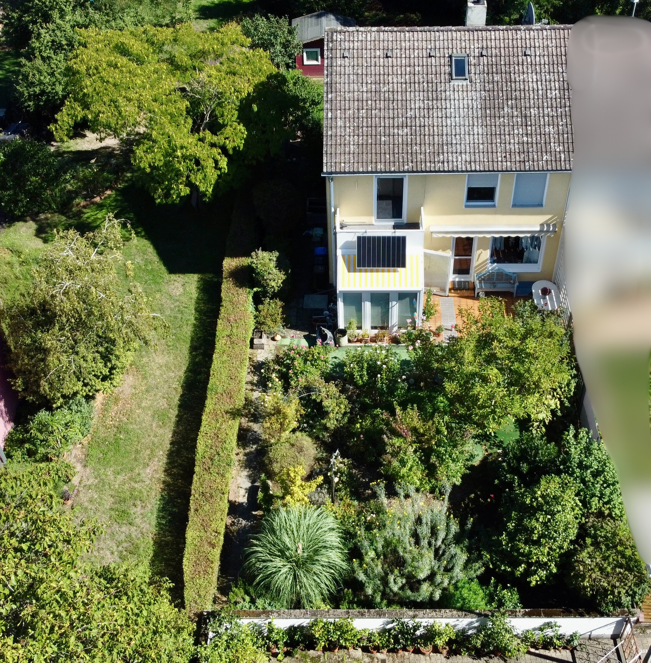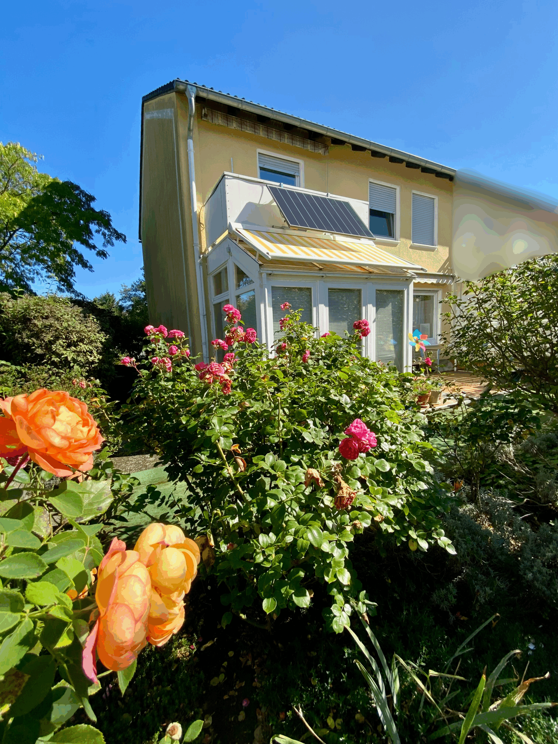 Im Erdgeschoss erwartet Sie ein helles und großzügiges Wohnzimmer mit ca. 27 m², welches über einen direkten Zugang auf die Terrasse sowie in den grünen Garten verfügt. Der offen integrierte Essbereich lädt zu geselligen Momenten ein. Ergänzt wird die Etage durch eine voll ausgestattete Küche, ein praktisches Büro, ein Gäste-WC sowie einen einladenden Flur im Eingangsbereich. Das Obergeschoss bietet drei gut geschnittene Zimmer, ein Tageslichtbad sowie einen Flur. Ein Balkon sowie ein lichtdurchfluteter Wintergarten bieten zusätzliche Rückzugsorte mit Blick ins Grüne. Die Terrasse mit Westausrichtung lädt vor allem in den Abendstunden zum Verweilen ein. Der gepflegte Garten ist vielfältig bepflanzt und wurde mit viel Liebe zum Detail gestaltet. Weiterhin steht Ihnen ein praktisches Gartenhäuschen zur Verfügung, optimal zur Unterbringung von Gartengeräten, Fahrrädern oder als kleine Hobbywerkstatt. Abgerundet wird das Angebot durch eine Garage mit einer Fläche von ca. 15 m².