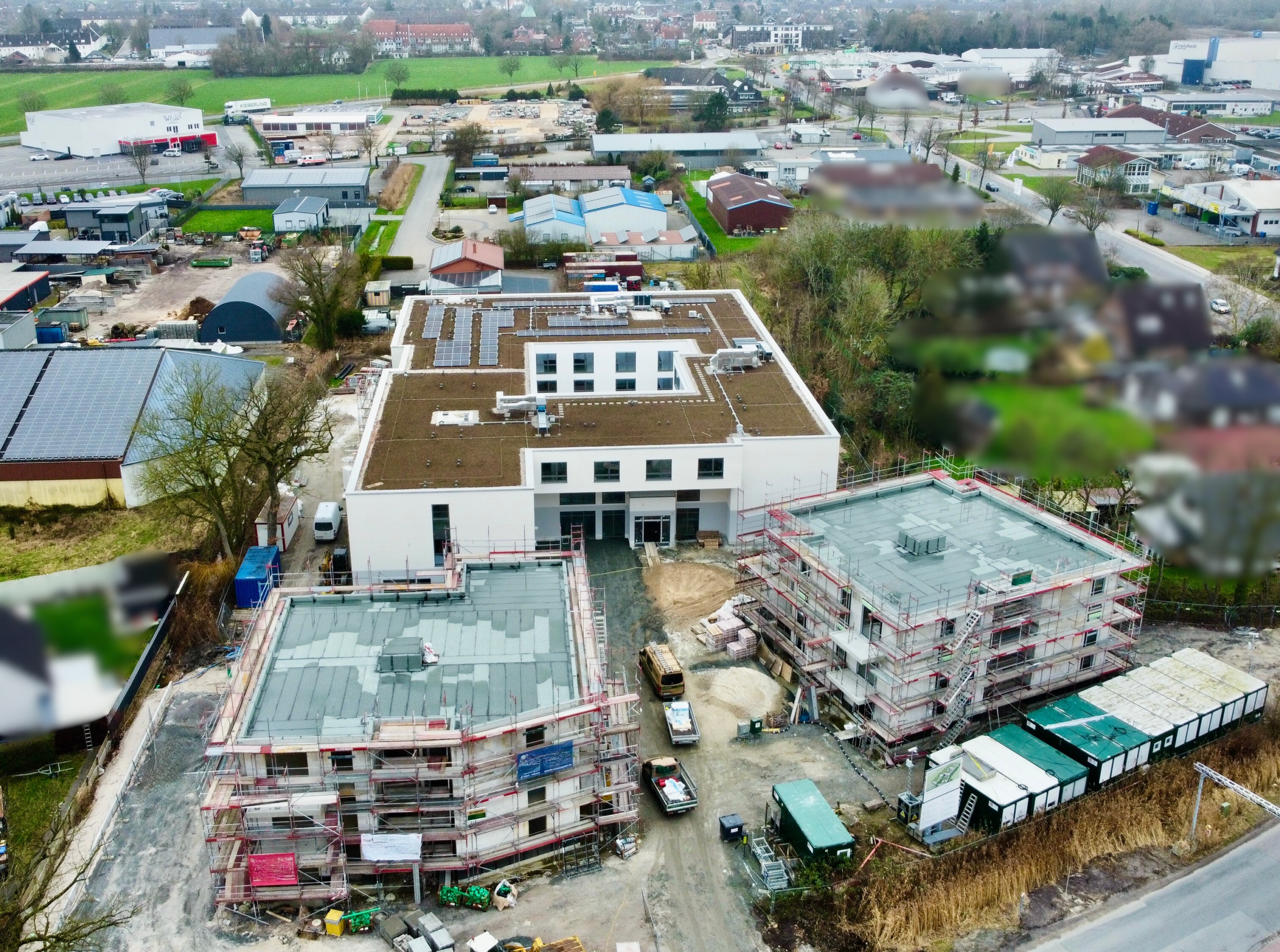 In zentraler Lage von Sande entsteht mit der Wohnresidenz Sande ein wegweisendes und architektonisch anspruchsvolles Neubauprojekt. Ein Erstbezug der Wohnungen, Apartments und Wohngemeinschaften mit Einzelzimmern ist ab dem 1. August 2026 geplant. Dieses moderne Ensemble, bestehend aus drei vollständig barrierefreien und rollstuhlgerechten Gebäuden, bietet nicht nur ein Zuhause, sondern eine innovative Lebensform: die perfekte Synthese aus individuellem Rückzugsort, umfassendem Service und gelebter Gemeinschaft. Dies ist ideal für alle, die Unabhängigkeit und höchste Lebensqualität in einer zugänglichen Umgebung suchen. Die Architektur ist besonders durchdacht: Das Hauptgebäude ist quadratisch angelegt und umschließt einen einladenden, begehbaren Innengarten, der als Mittelpunkt dient und die Bewohner zum Verweilen und zur Begegnung einlädt.