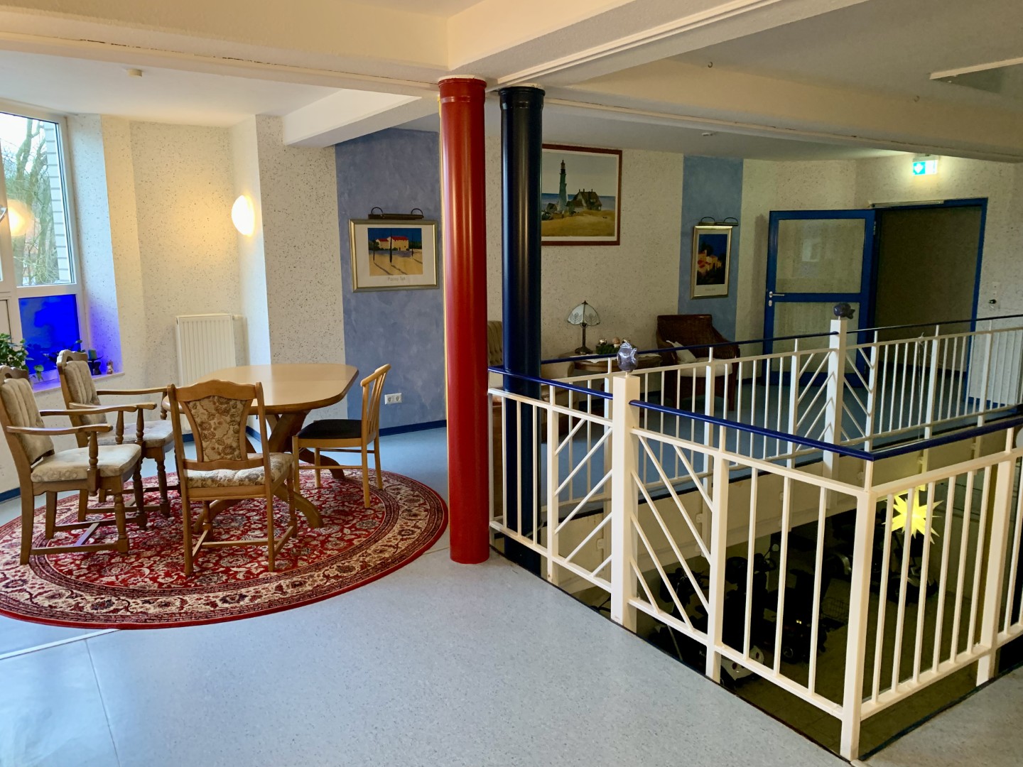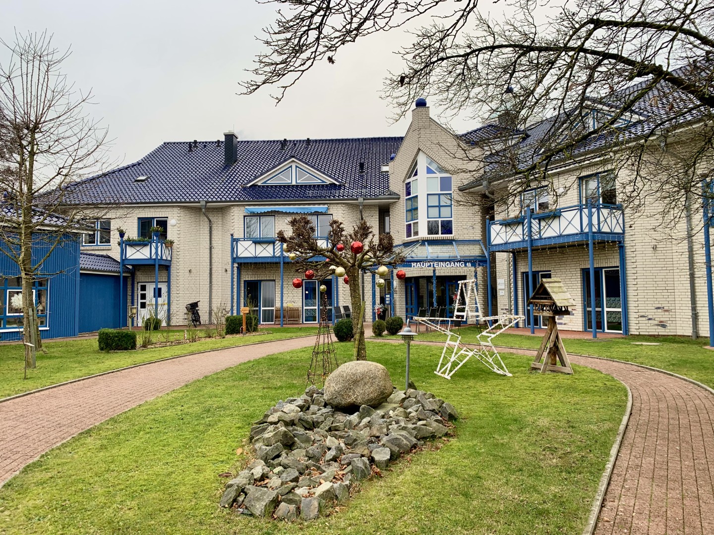 Das soziale Leben findet im Komplex einen vielseitigen Rahmen: Ein zentraler Speisesaal sowie ein hauseigenes Bistro mit gemütlichem Café-Charakter bilden den lebendigen Mittelpunkt für Begegnungen, kulturelle Veranstaltungen und Feste. Eingebettet ist das Gebäude in eine parkähnliche Gartenanlage, deren barrierefreie Rundwege die verschiedenen Gebäudeflügel harmonisch miteinander verbinden. Besonders hervorzuheben ist die zentrale Lage im Herzen von Sande, die eine hervorragende Anbindung an das dörfliche Leben ermöglicht, während hauseigene Parkplätze und eine moderne E-Ladestation den Komfort für Besucher abrunden.