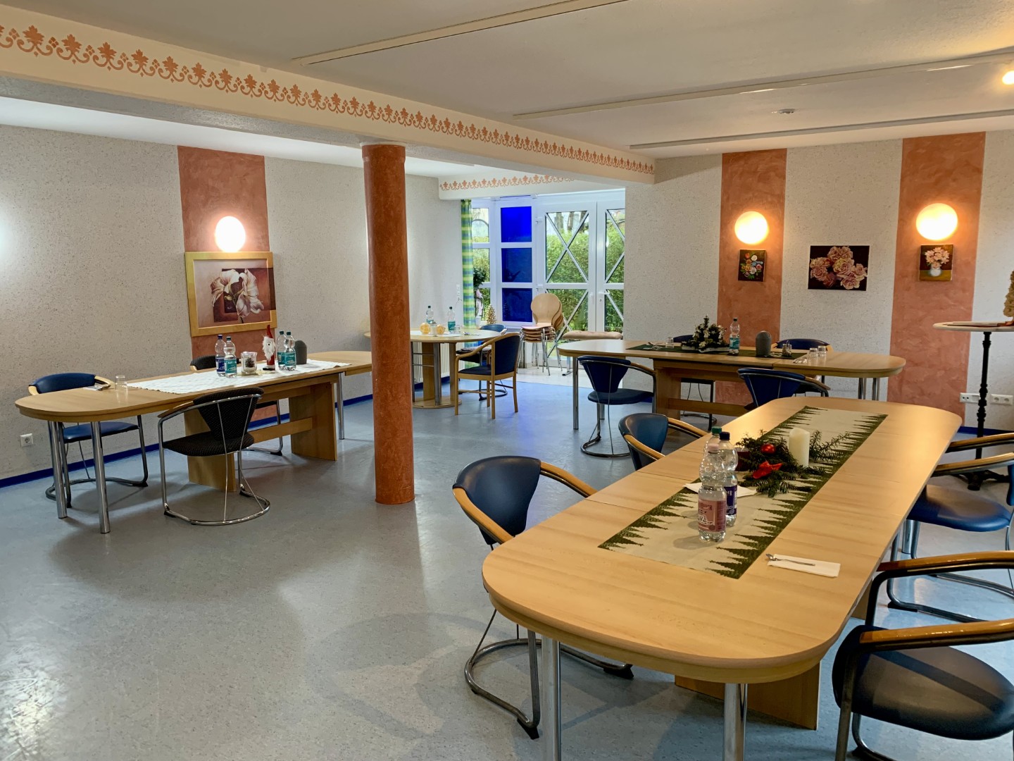 Dieses besondere Gemeinschaftsgefühl entfaltet sich an ganz unterschiedlichen Orten: Während die Bibliothek als stiller Rückzugsort zum Lesen, Informieren und Verweilen einlädt, bietet sie zudem Raum für die Nutzung von Büchern, Zeitschriften und Zeitungen. Auf diese Weise wird die geistige Aktivität gezielt gefördert und die Pflege persönlicher Interessen ermöglicht. Als dynamischer Treffpunkt des Alltags dient hingegen die Cafeteria. Hier entstehen bei einer Tasse Kaffee oder kleinen Köstlichkeiten ganz ungezwungen neue Kontakte in einer herzlichen Atmosphäre. Abgerundet wird dieses Angebot durch den zentralen Gemeinschaftsraum, der vor allem für gesellige Lese- und Spielenachmittage geschätzt wird. Ob bei einer spannenden Partie Karten oder in gemeinsamer Runde – diese Aktivitäten fördern nicht nur die geistige Vitalität, sondern bringen auch Abwechslung und Freude in den Alltag.
