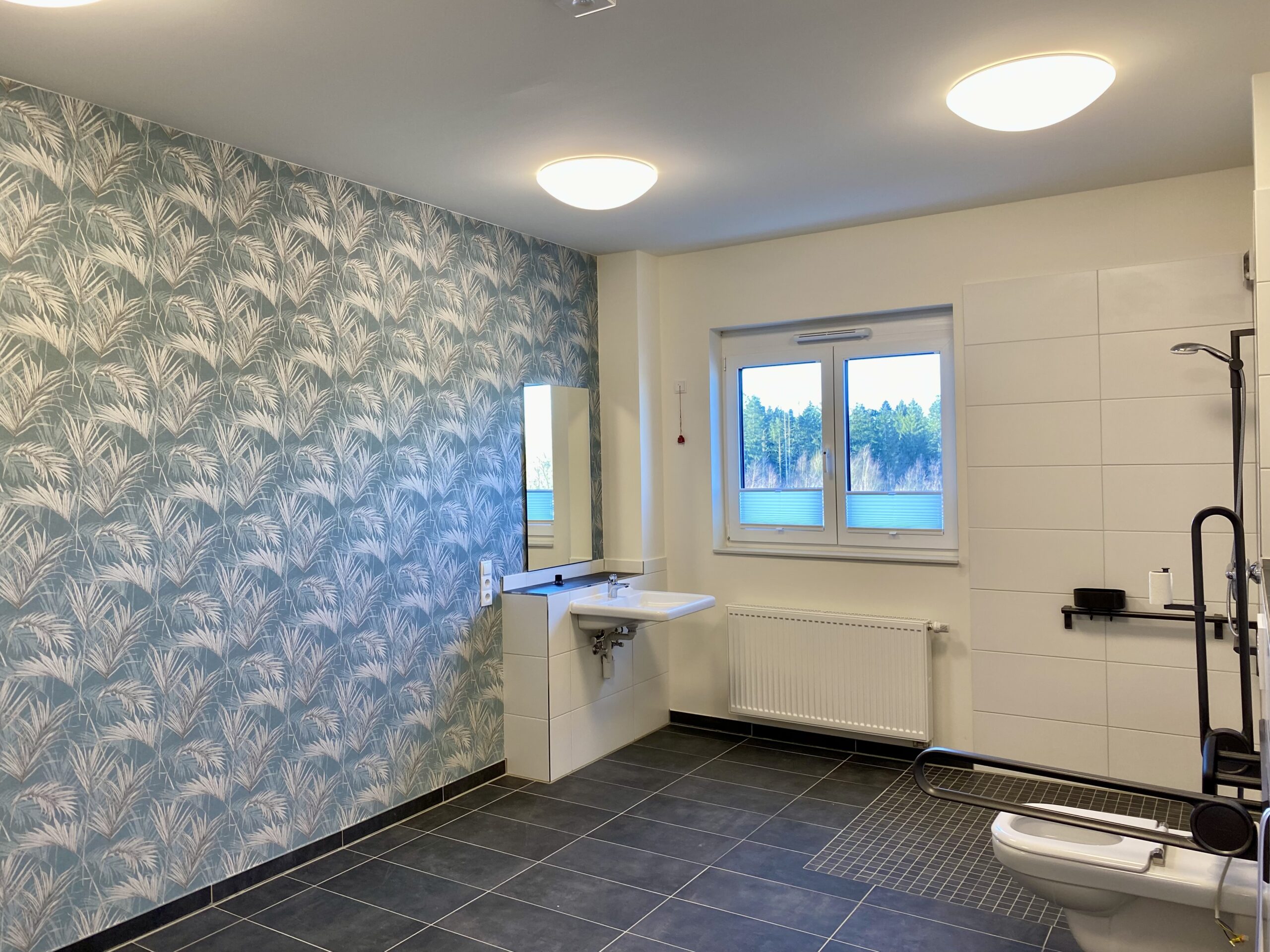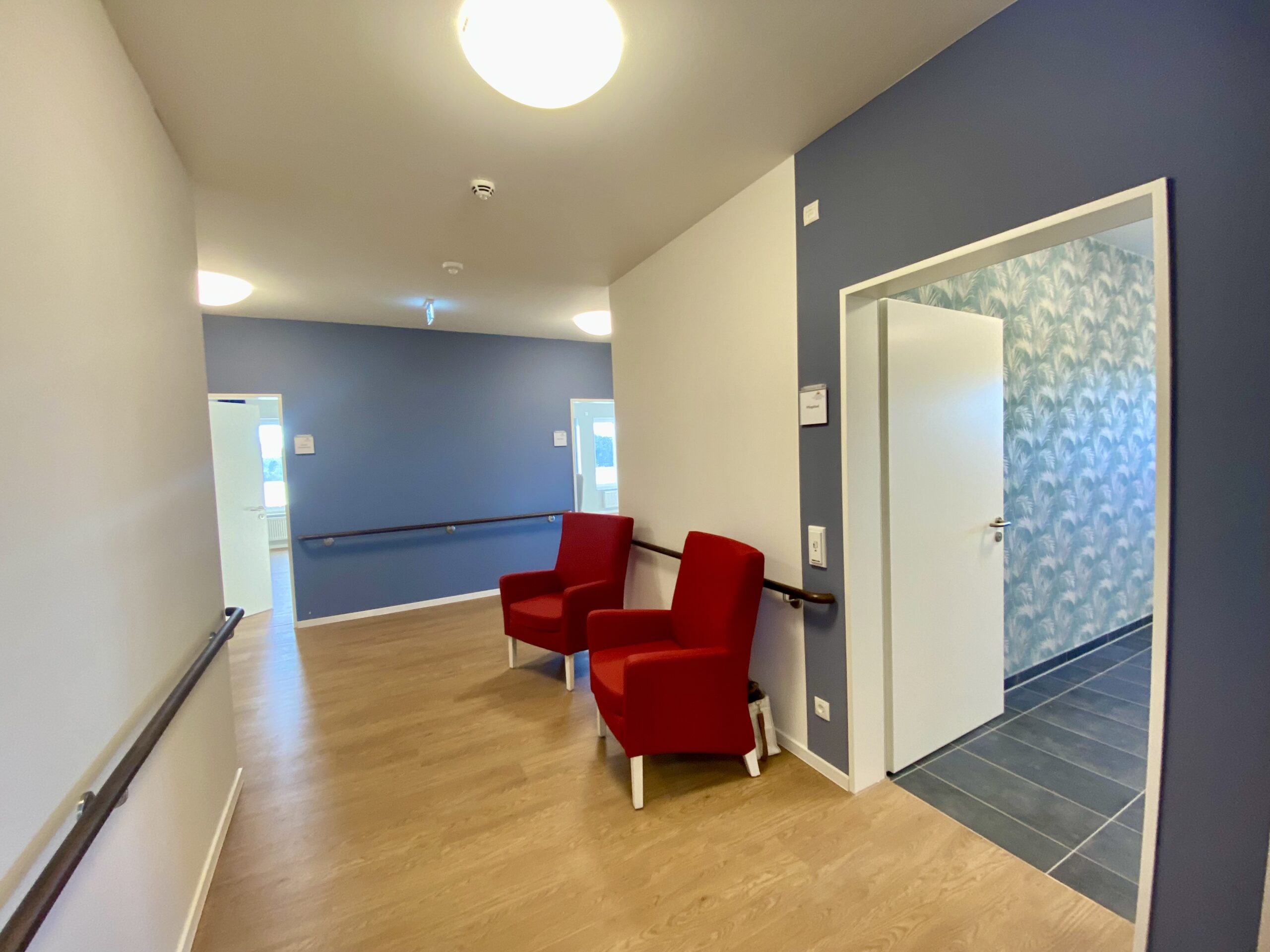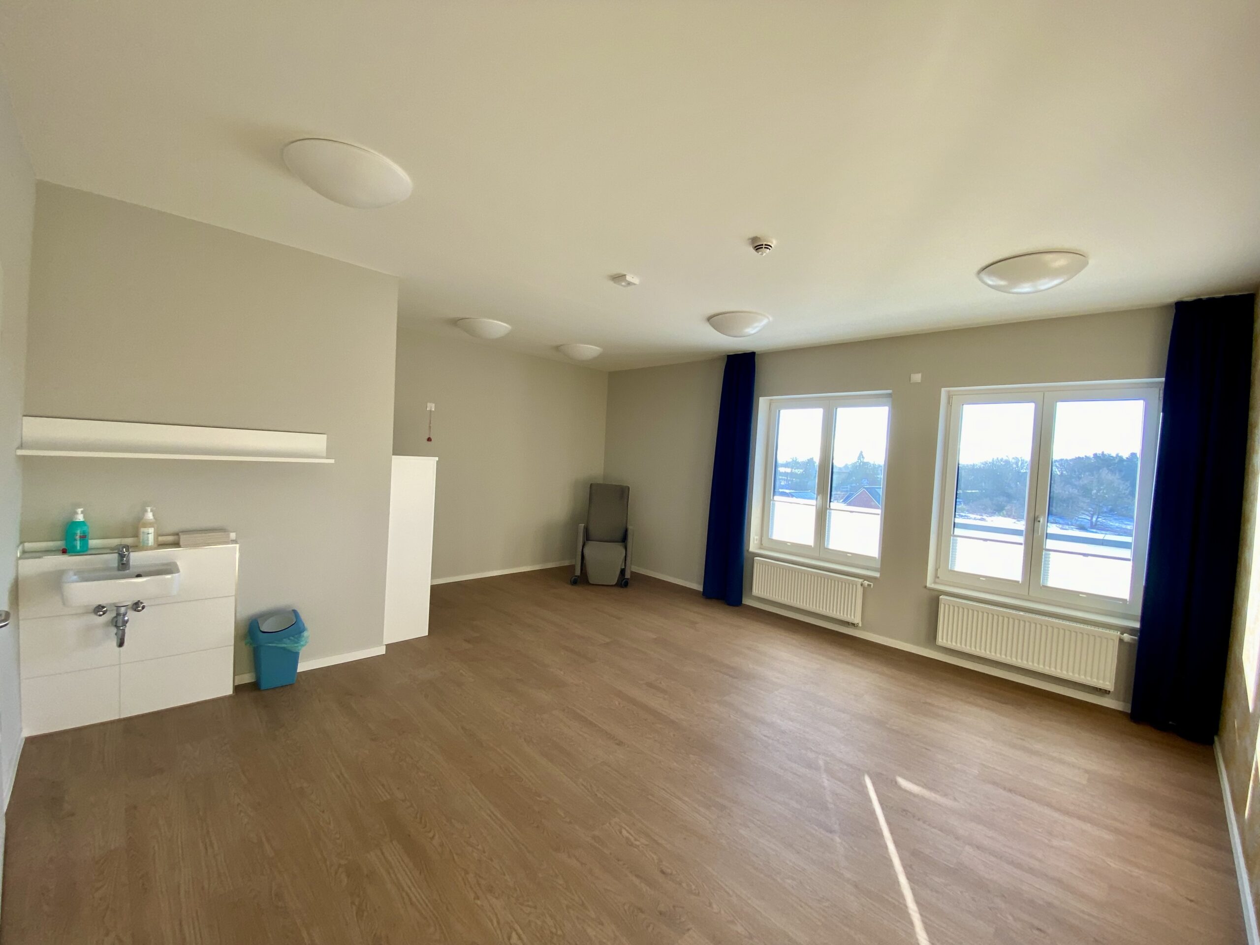 Das durchdachte Raumkonzept überzeugt durch seine Vielseitigkeit. Neben dem weitläufigen Gemeinschaftsbereich mit integrierter Gemeinschaftsküche stehen separate Therapie- und Multifunktionsräume zur Verfügung. Ergänzt wird das Flächenangebot durch moderne, großzügig geschnittene Sanitärbereiche, die speziell auf die Bedürfnisse von Menschen mit eingeschränkter Mobilität ausgelegt sind und ein Höchstmaß an Hygiene und Komfort bieten. Sämtliche Bereiche sind barrierearm gestaltet, um den besonderen Anforderungen an Mobilität und Sicherheit vollumfänglich Rechnung zu tragen.