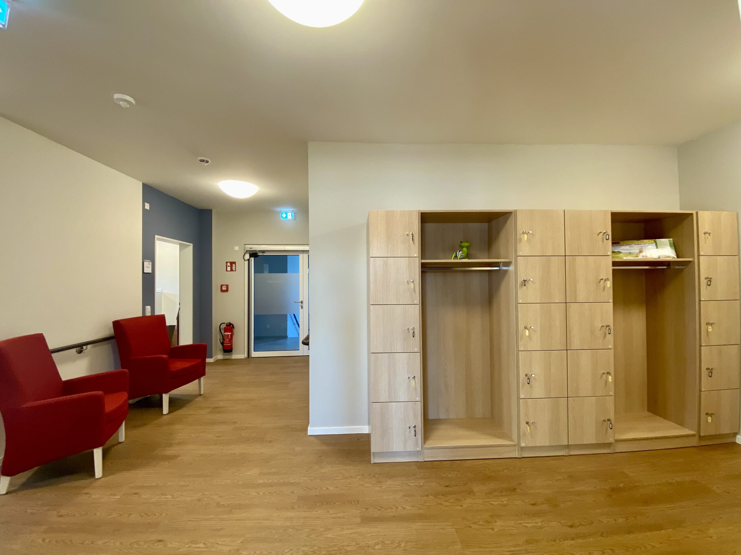 • Mitarbeiterbereich: Dienstzimmer, separates Personal-WC und Umkleidemöglichkeiten, Lagerräume