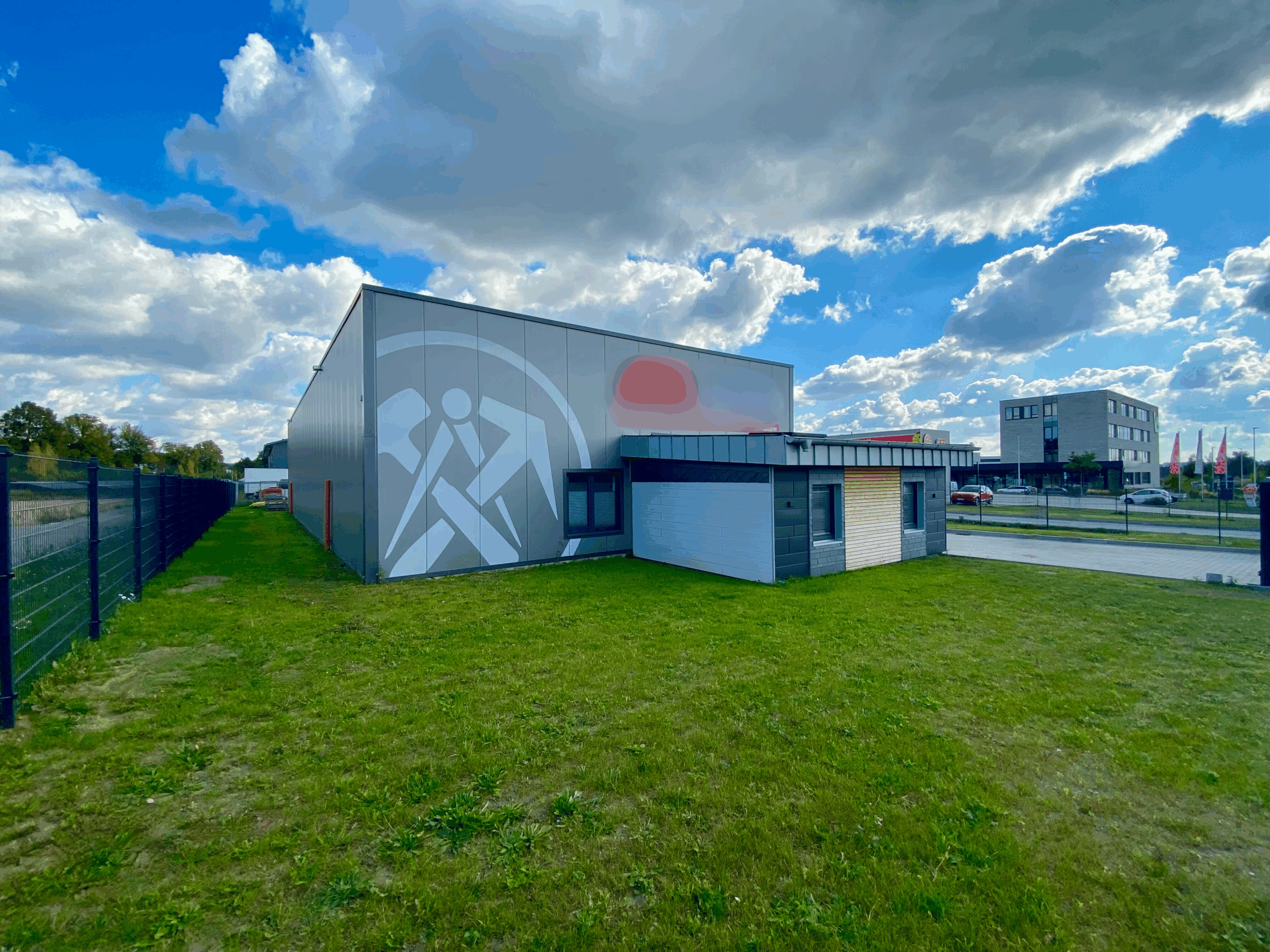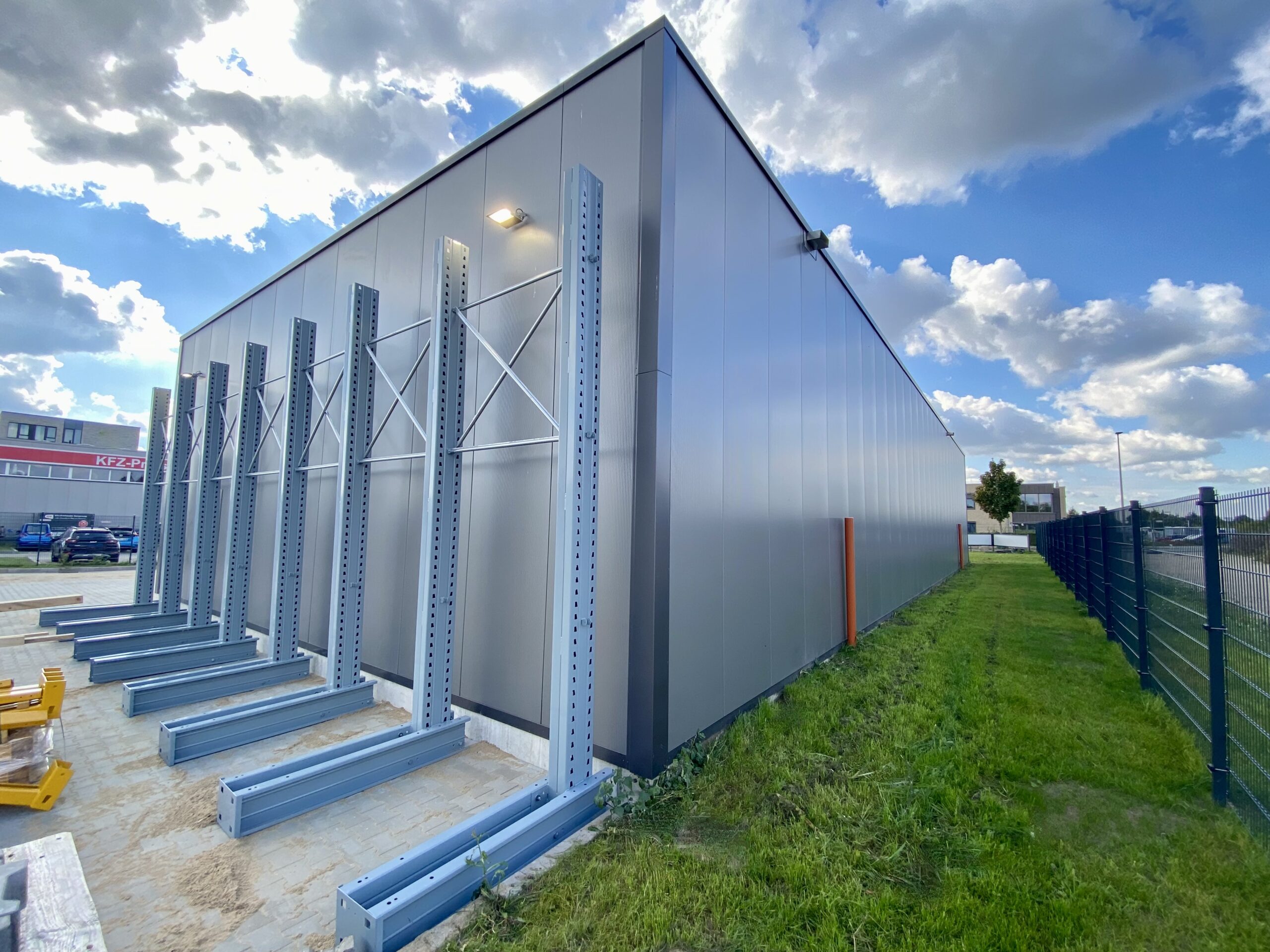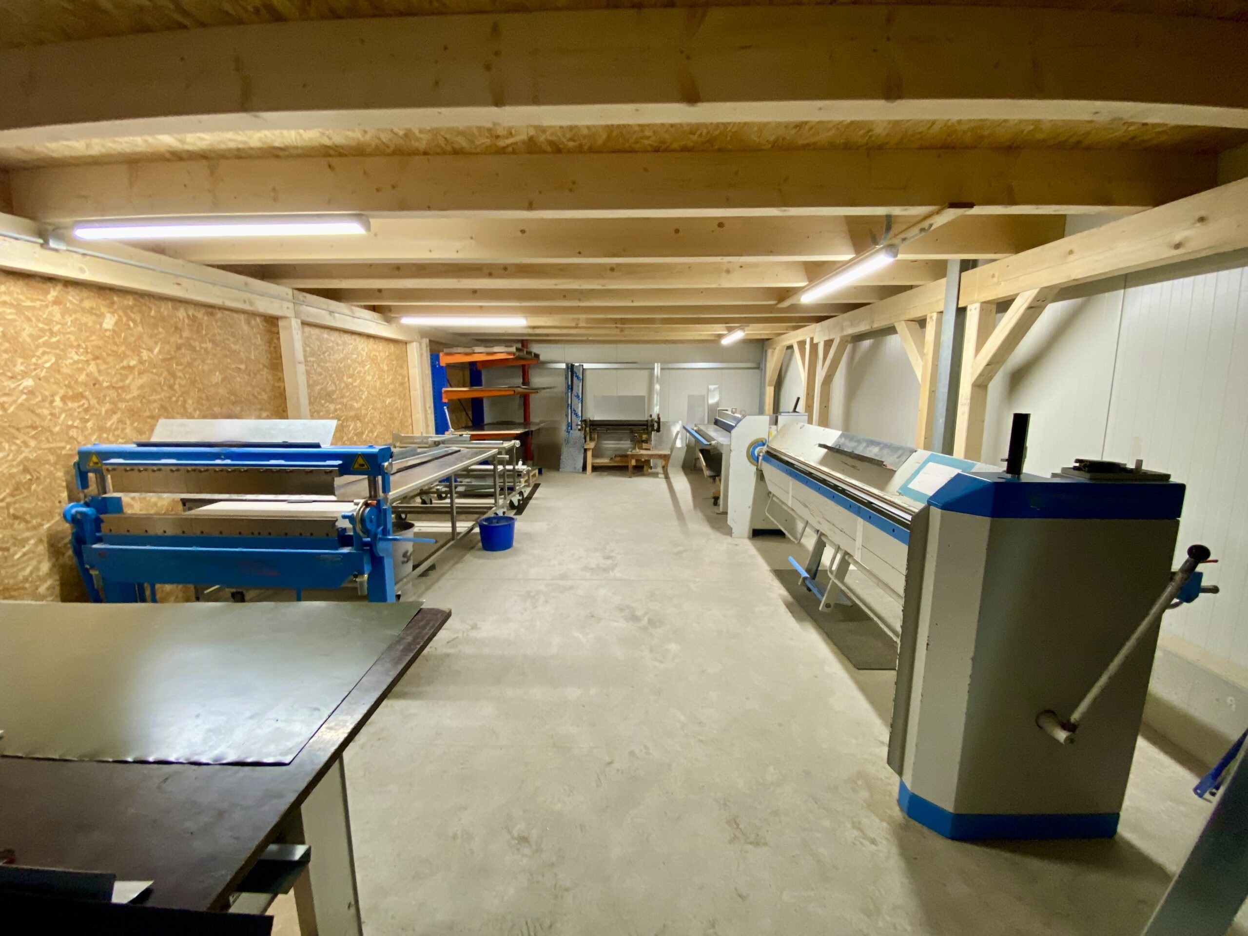 Die kompakte Lagerhalle bietet auf ca. 70 m² Nutzfläche ideale Bedingungen für eine effiziente Nutzung. Ein elektrisches Sektionaltor ermöglicht komfortables Be- und Entladen, während die direkte Verbindung zur Produktionshalle kurze Wege und reibungslose Abläufe gewährleistet. Für natürliches Tageslicht sorgt auch hier eine Lichtkuppel.