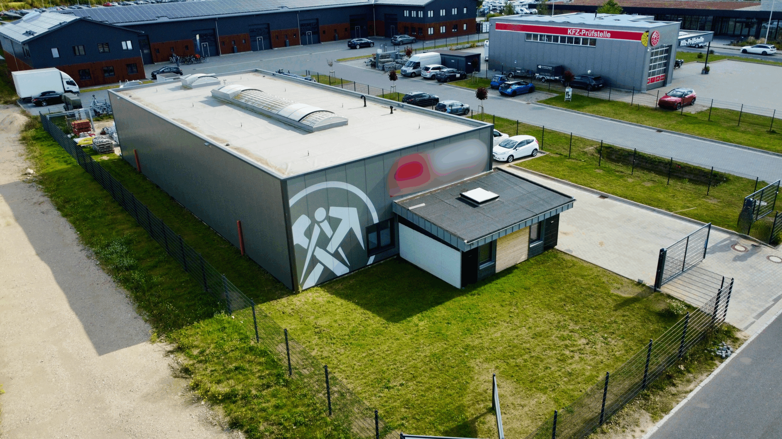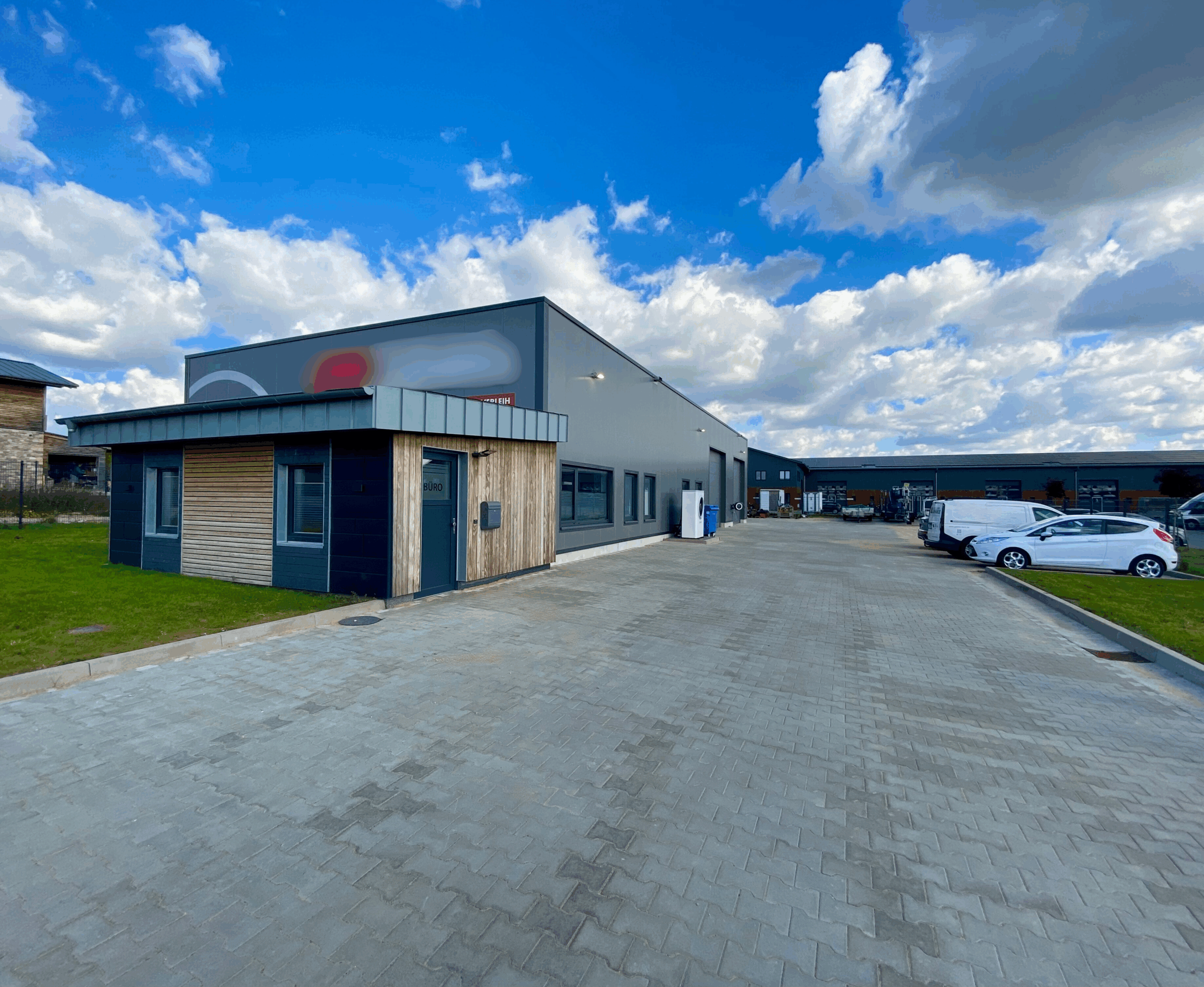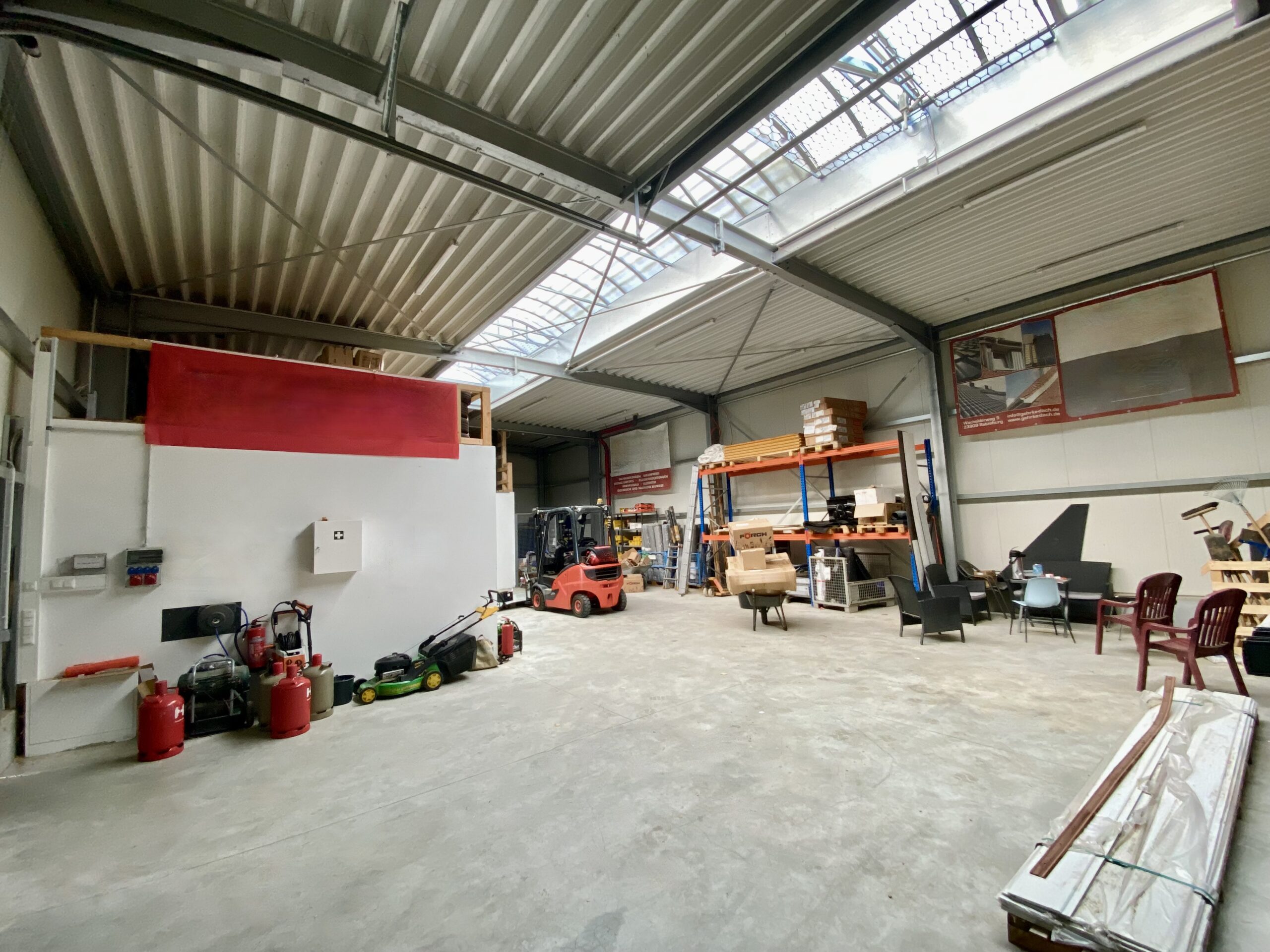 Die kompakte Lagerhalle bietet auf ca. 70 m² Nutzfläche ideale Bedingungen für eine effiziente Nutzung. Ein elektrisches Sektionaltor ermöglicht komfortables Be- und Entladen, während die direkte Verbindung zur Produktionshalle kurze Wege und reibungslose Abläufe gewährleistet. Für natürliches Tageslicht sorgt auch hier eine Lichtkuppel.